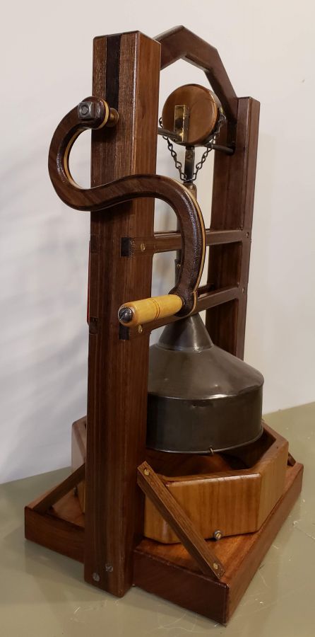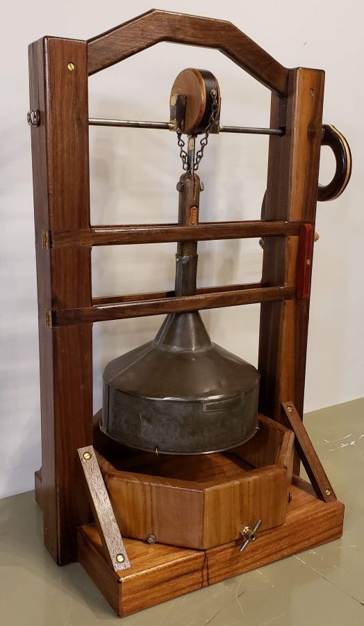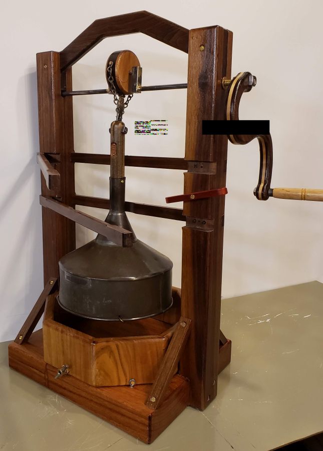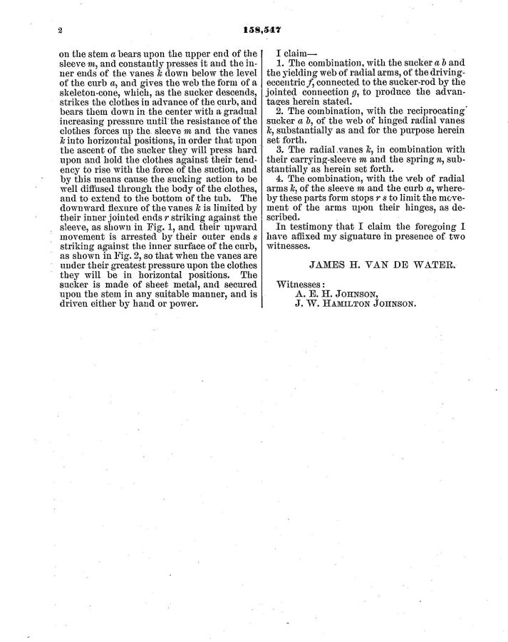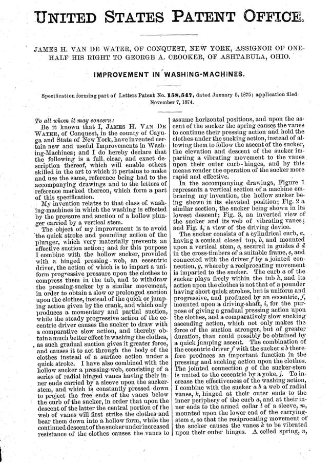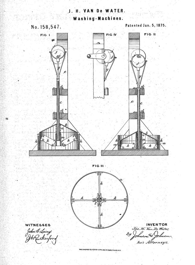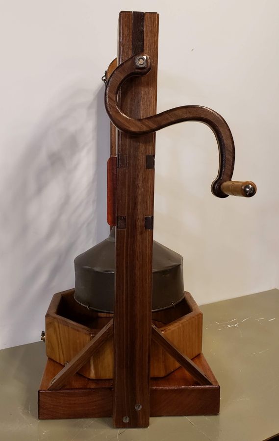 See patent 158547 issued to James H. Van De Water of Conquest, New York on January 5, 1875. The cone agitator was attached to a long handle (shown in one of the additional pictures) when purchased on eBay. Although listed here as a patent demo it is a full-sized machine. |