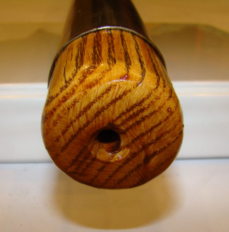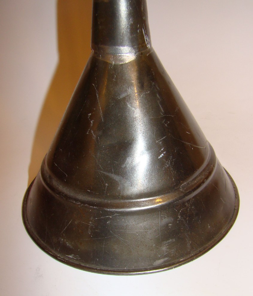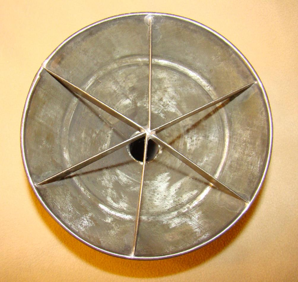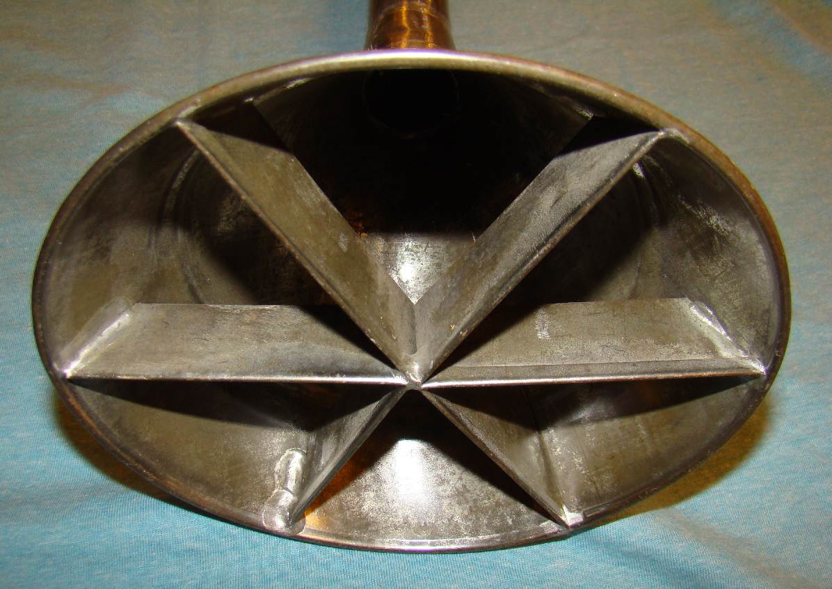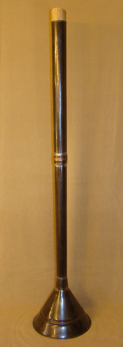 Vacuum washing stomp, plated tin,hole in end of handle for valve to let air out of cone |