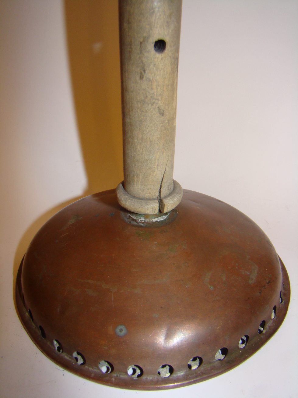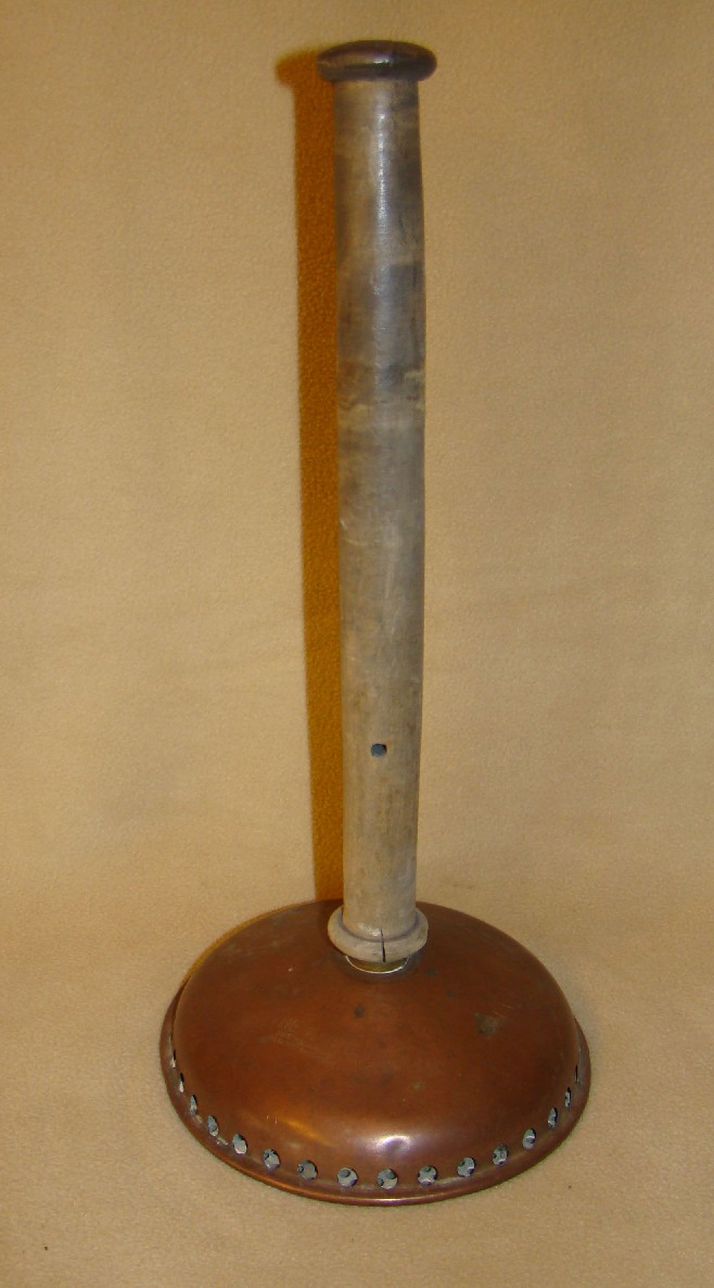 Vacuum washing stomp, has small hole in handle to act as valve for air