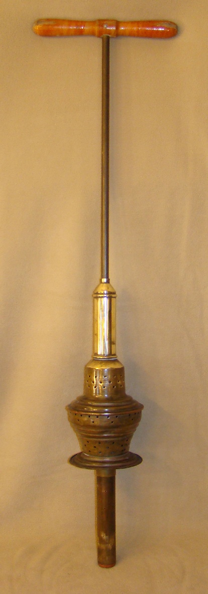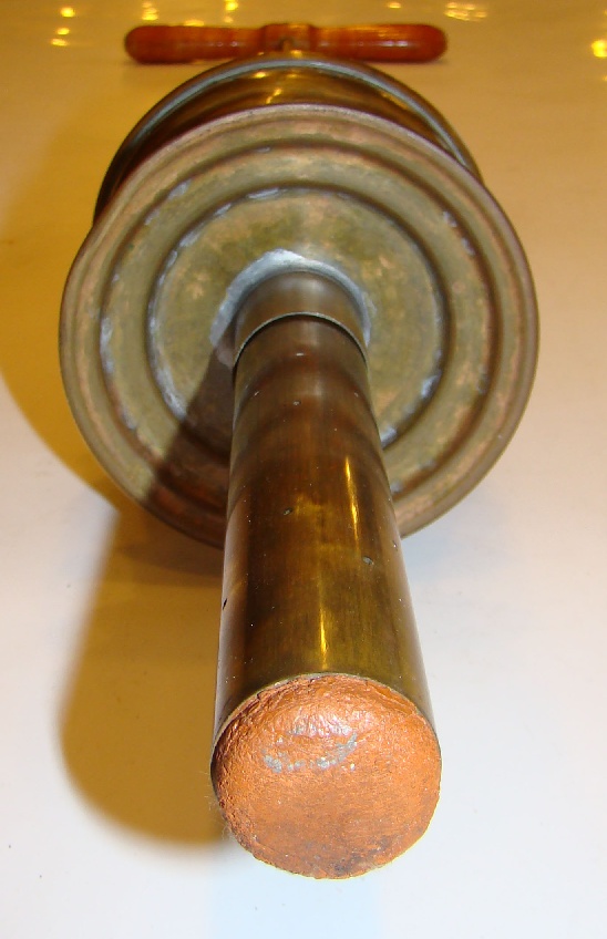 Pump washing stomp with spring and pump, brass, rubber tip at bottom |