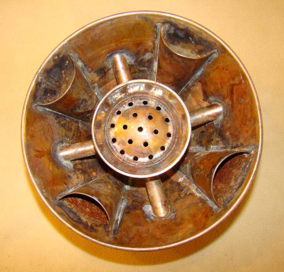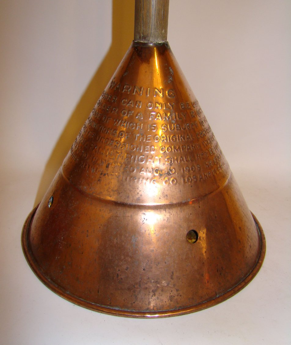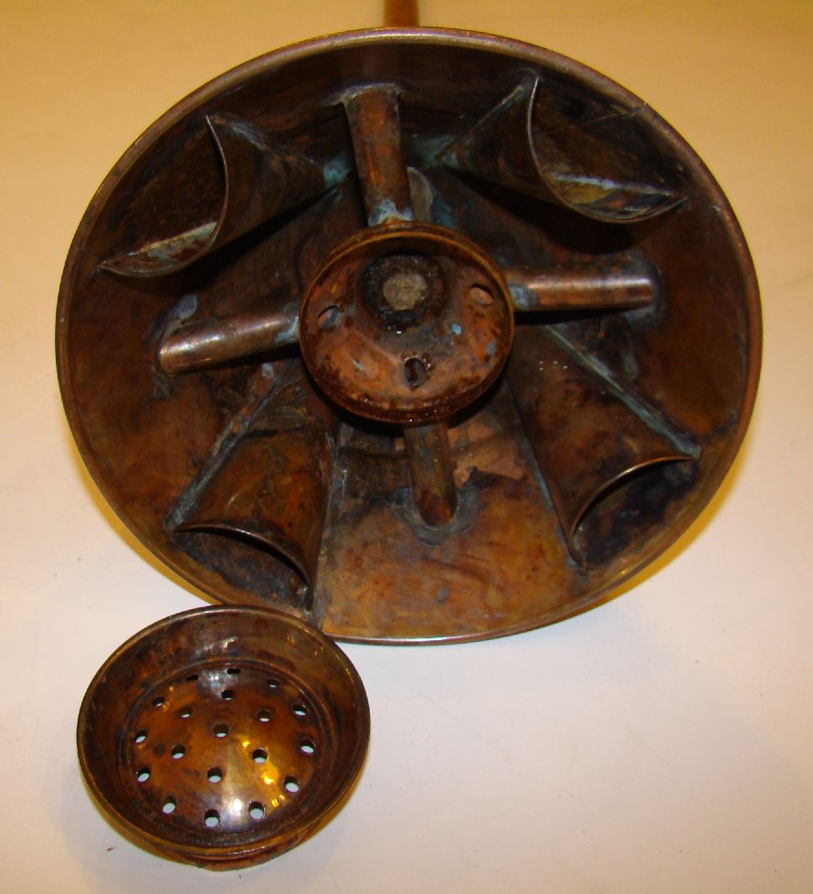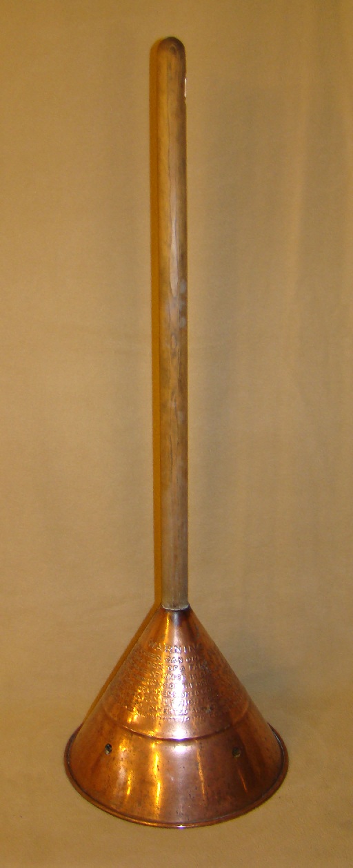 Vacuum washing stomp, copper, with soap holder in cone, with extensive Notice and Warning