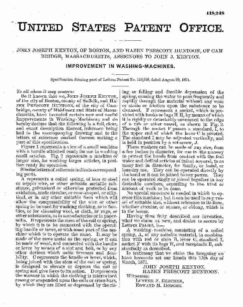 See US Pat. No. 118248 (Note: This may be a whisk but it looks like the washer in the patent drawing)