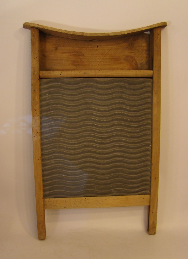 Washboard for a lady in a family way, galvanized scrubbing surface |