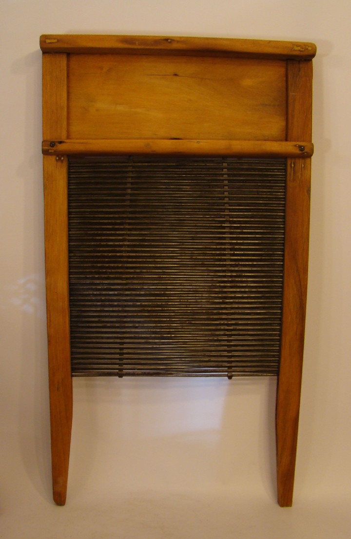Washboard, metal rods as scrubbing surface
