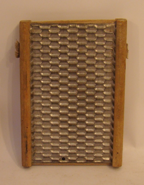 washboard,tin plated, strap provided so can be worn on palm of hand like a washing mitt |