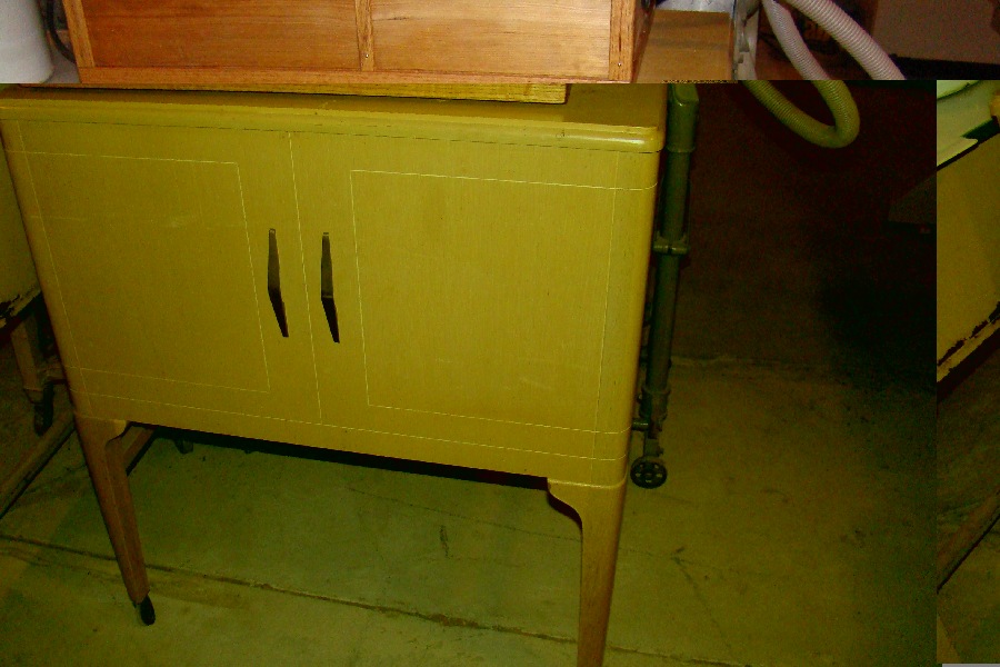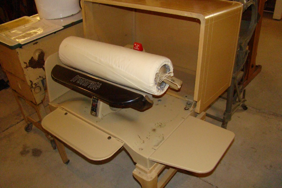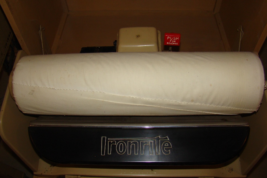 Mangle, electric motor, in wooden cabinet