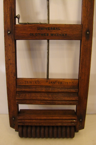 Used to beat and scrub the clothes at the bottom of a tub perhaps against a washboard. See US patent 98855 and US patent 98856