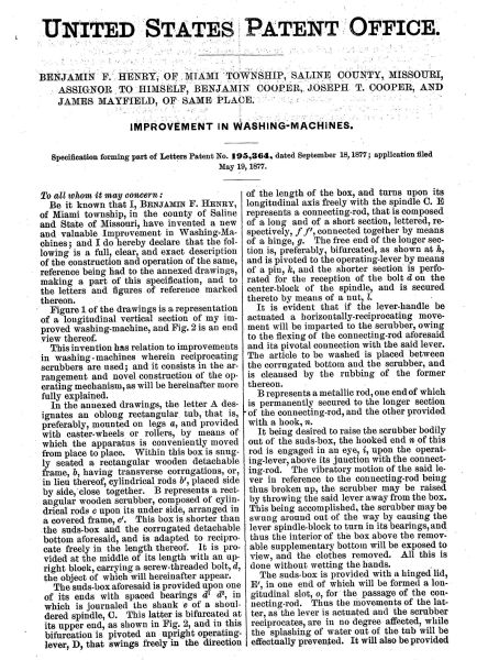 US Patent number 195364 September 18, 1877 Miami Township, Saline County, Missouri