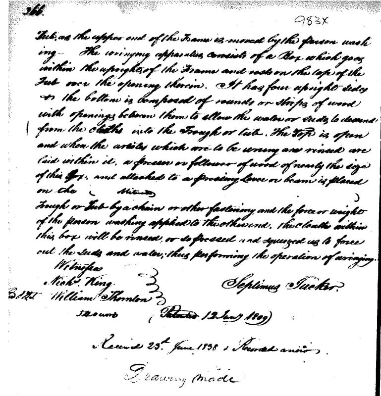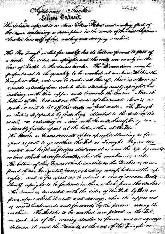 US Pat. No. 983X Jan 7, 1809 Septimus Tucker