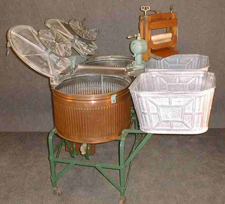Dolly washer,cast aluminum agitators, two copper tubs, electric motor |