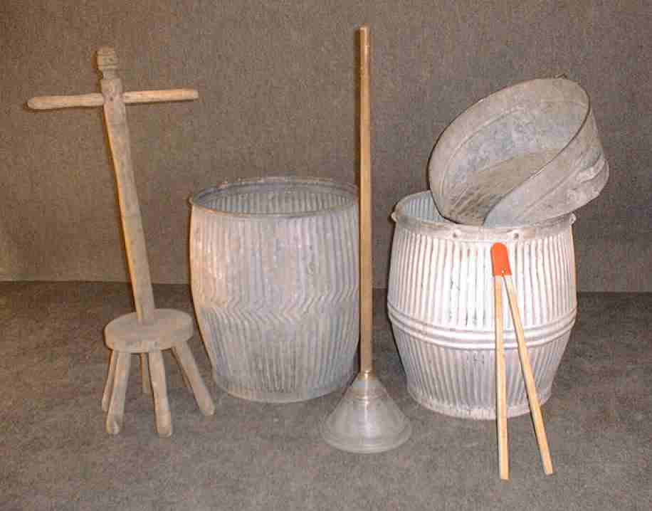 "Dolly" tub used for washing with a dolly stomp |