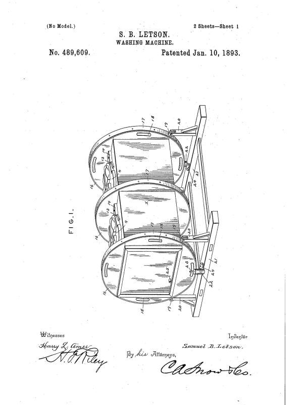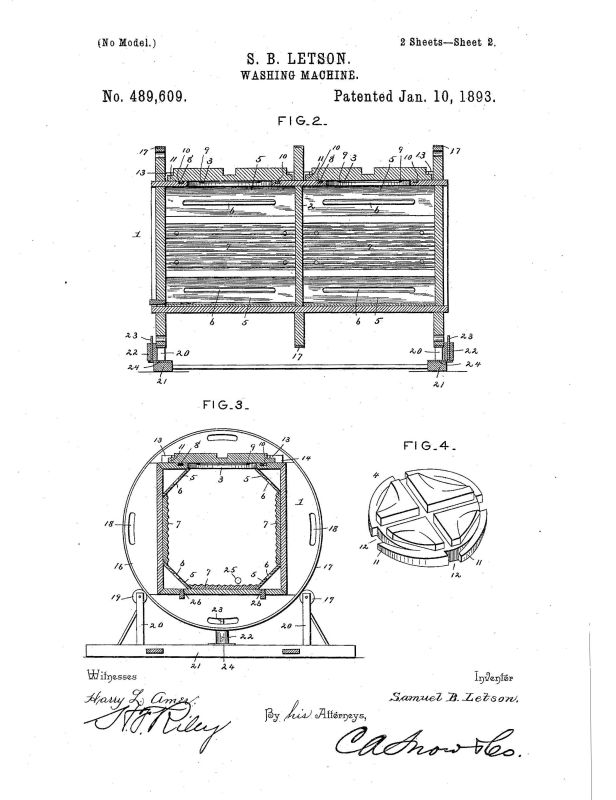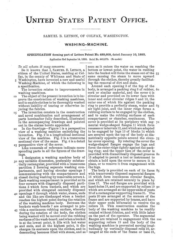 Samuel B. Letson of Colfax, Washington was issured the patent (489609) for this machine on January 10, 1893