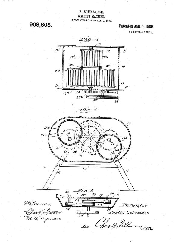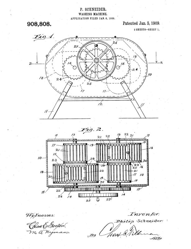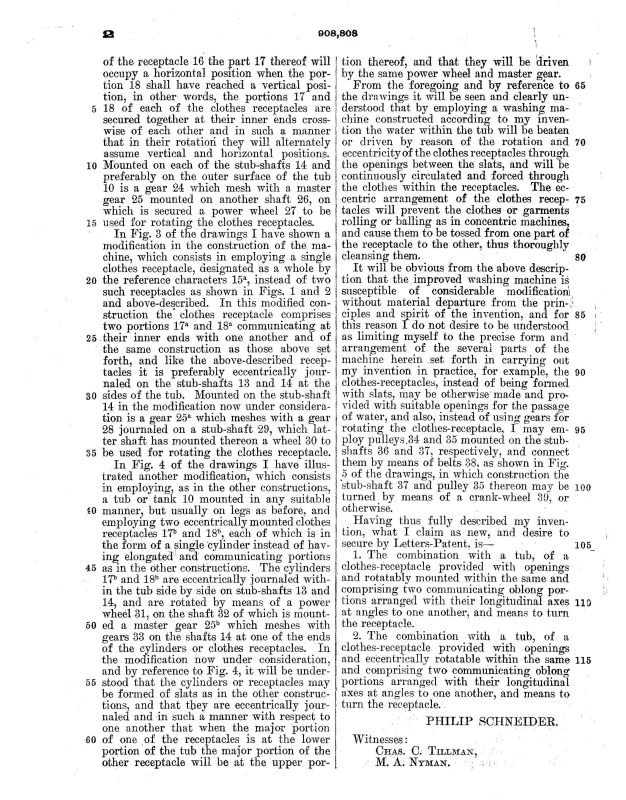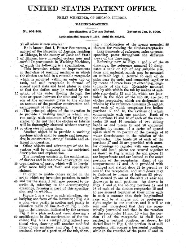 US Patent 908808 issued to Philip Schneider of Chicago, Illinois, Jan. 5, 1909 See also 886745