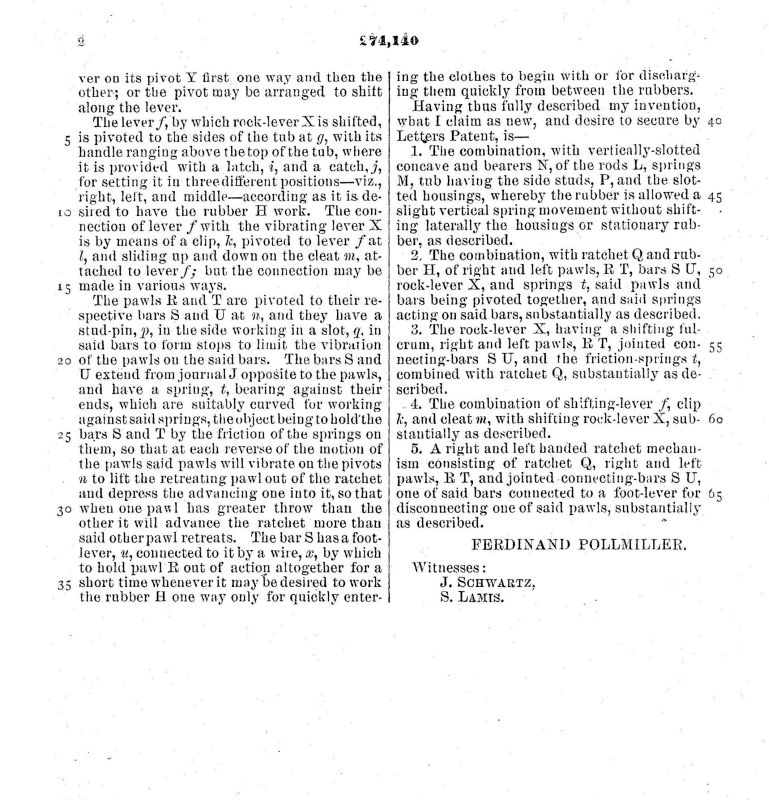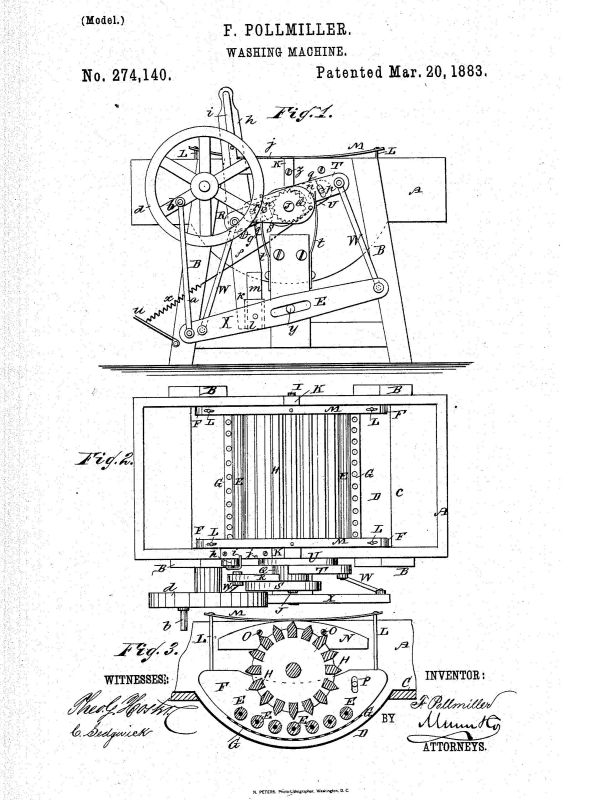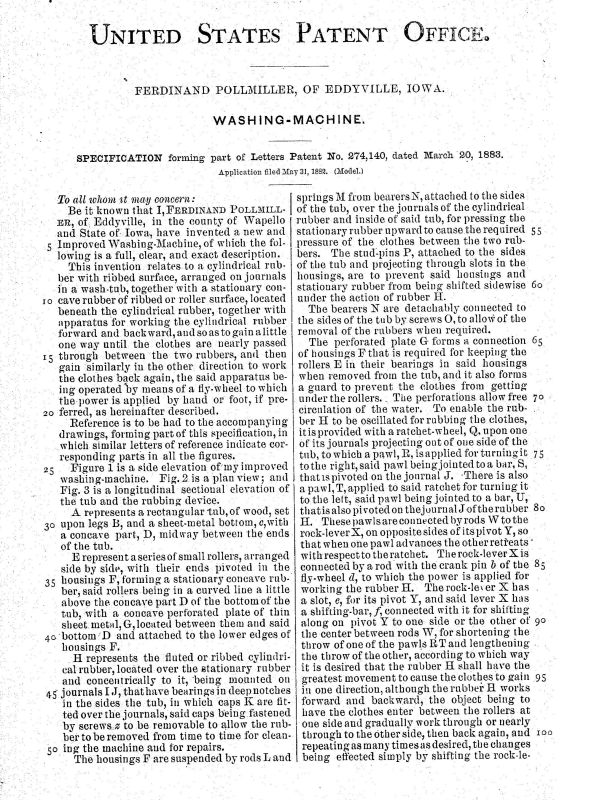 Patent issued to Ferdinand Pollmiller of Eddyville, IA March 20, 1883