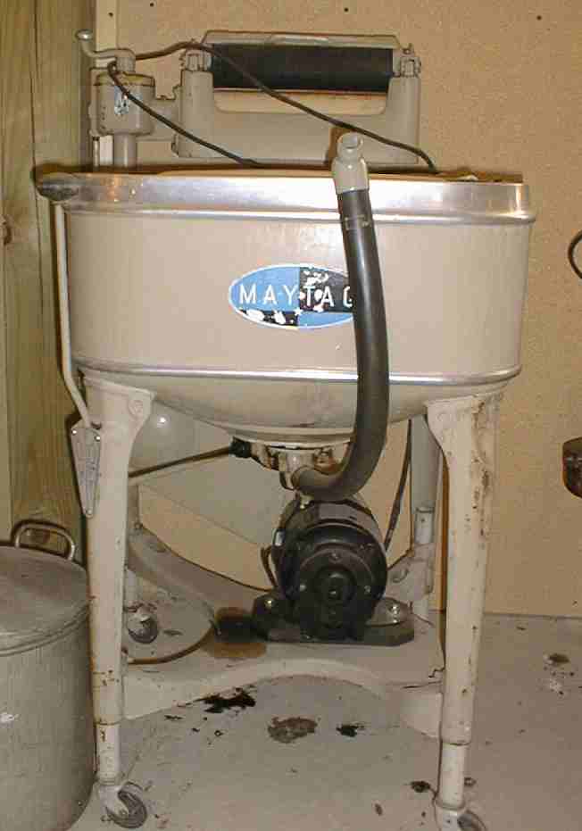 Gyrator washer, square cast aluminum tub, electric,equipped with a water pump to get the water out of the tub
