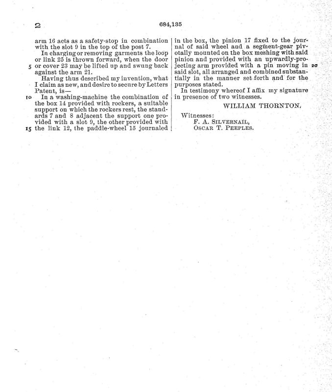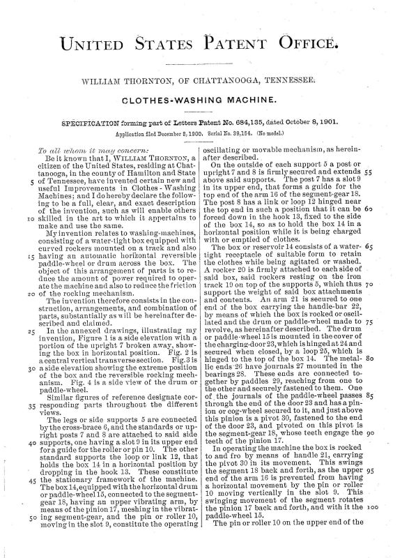 Patent issued to William Thornton of Chattanooga, Tennessee October 8, 1901