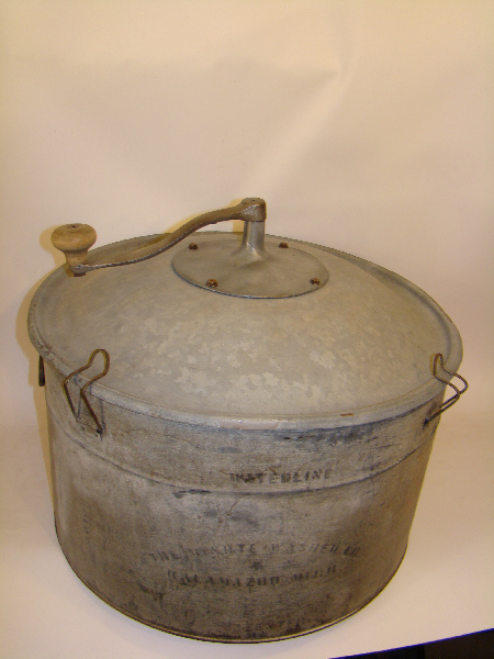 Rotating or oscillating paddle, stove top model, tub has corrugated wall.