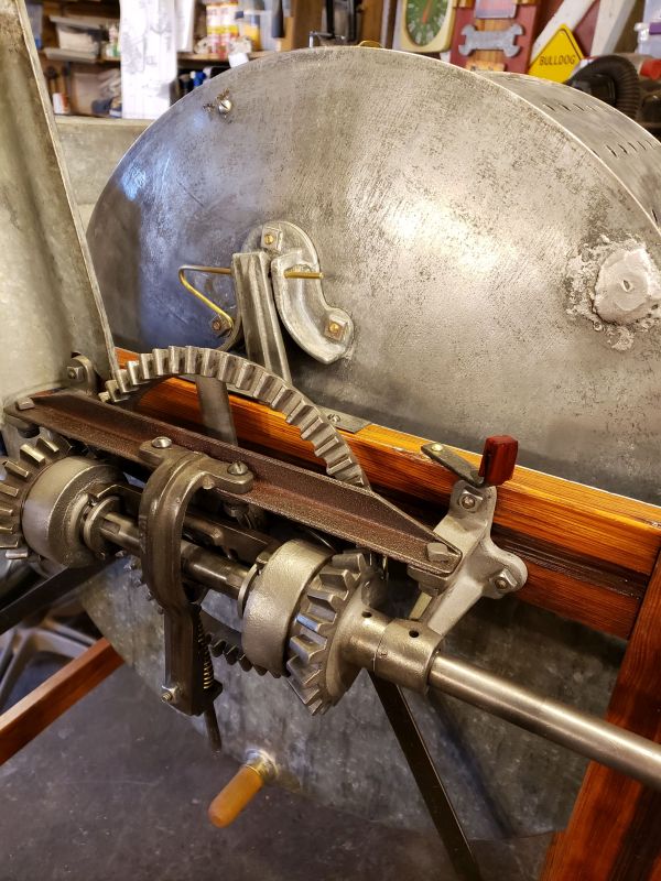 Hand operated tumbler, drum does automatic reversing
