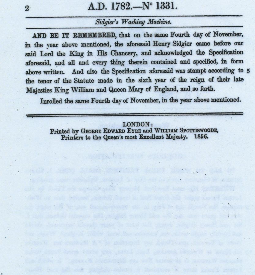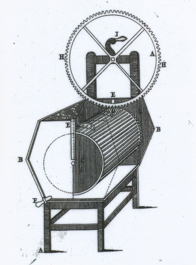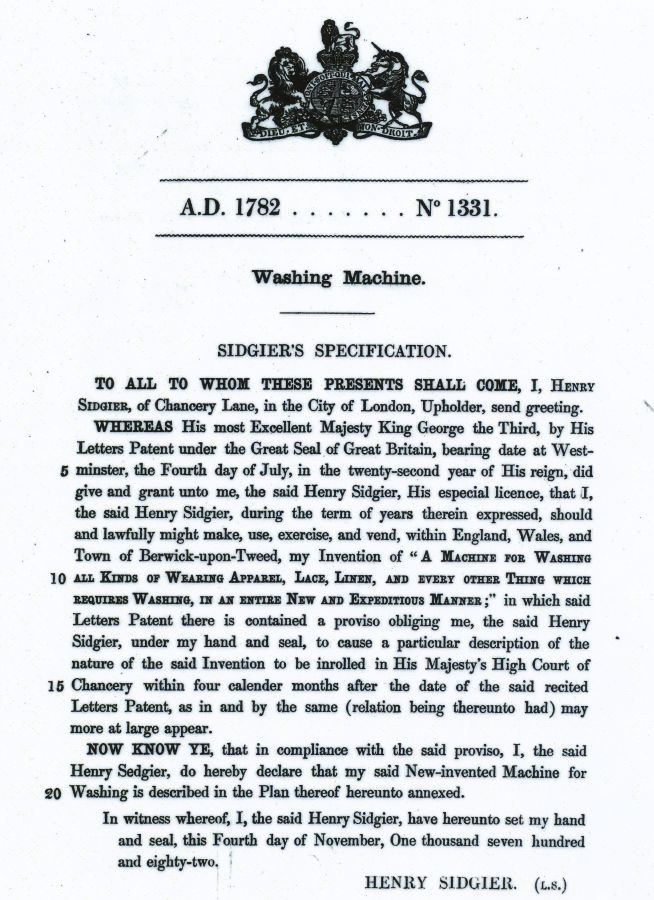 Patent issued July 4, 1782 by Kng George iii who formerlly declared America to be independent September 3, 1783 a year later. See the other patent demo of this same invention as ID 852. The rotating drum is used today in front loading washers. |