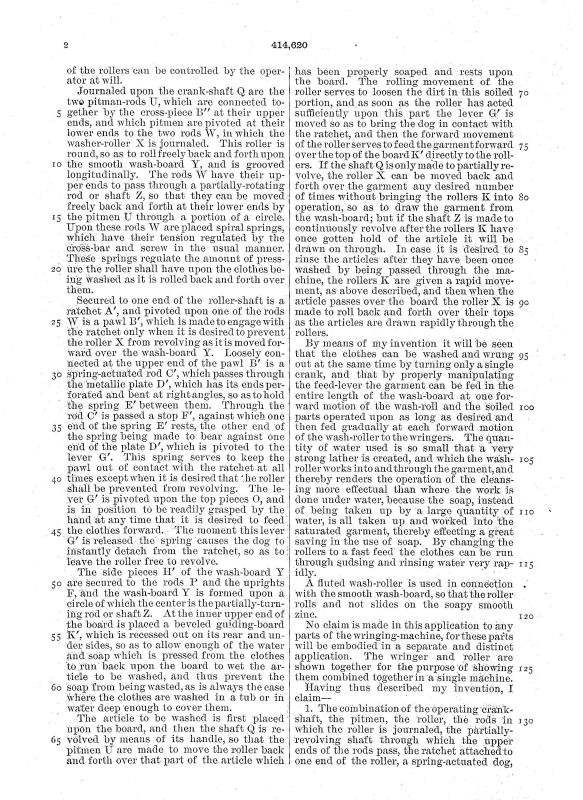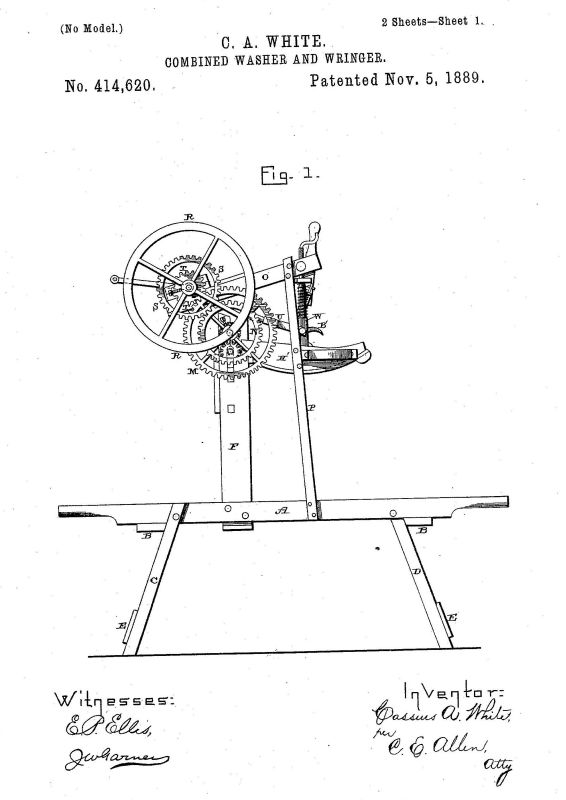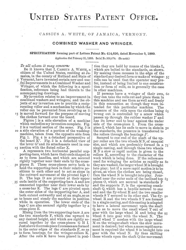 Patented by Cassius A. White of Jamaica, Vermont November 5, 1889 US Patent No. 414620