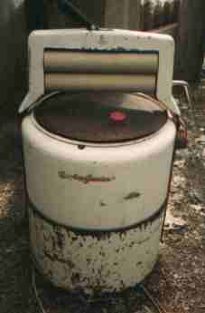 Gyrator washer, white porcelain tub, electric motor, apartment size