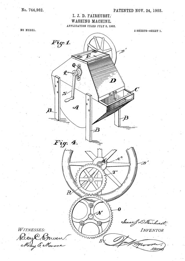 Isaac J. D. Fairhurst of Cabb, Wisconsin was granted US patent 744962 for this machine on November 24, 1903.
