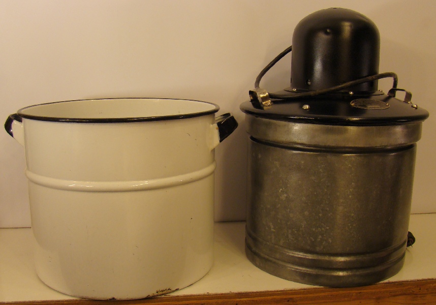 Pump washer, porcelain tub, apartment size, electric motor
