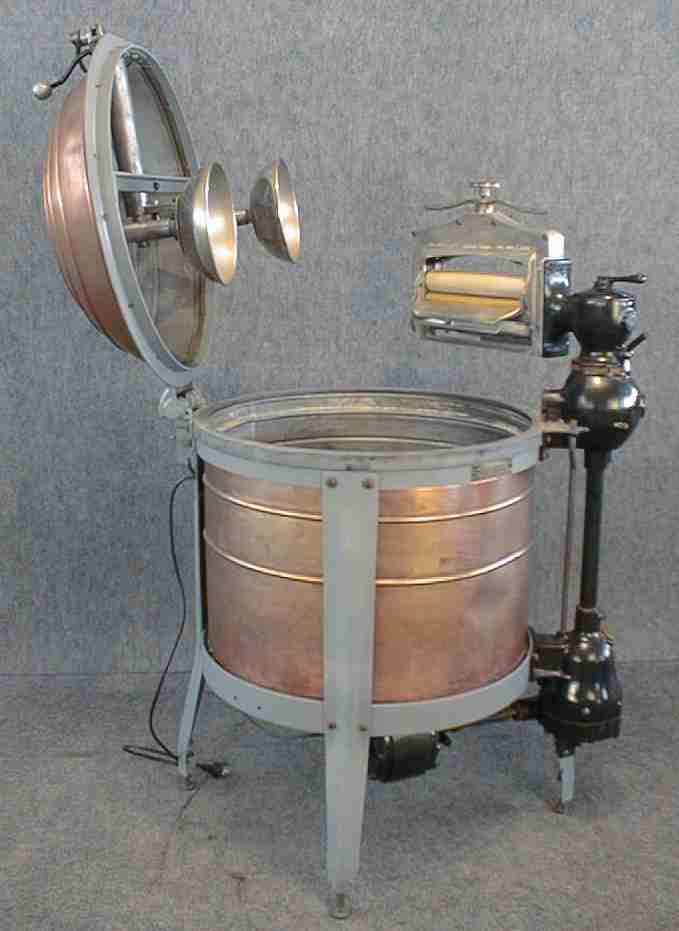 Vacuum washer, double cone, copper tub which rotates on a vertical axis, electric motor