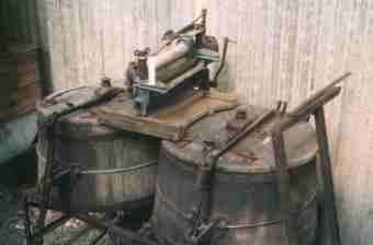 Dolly washer, double wooden tub, belt driven or hand operated |