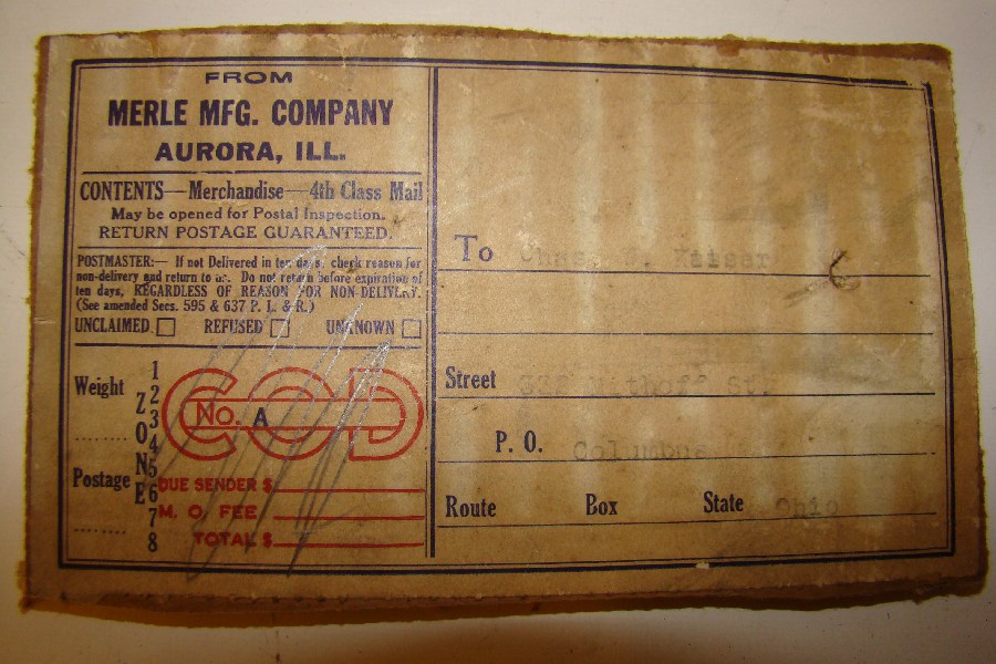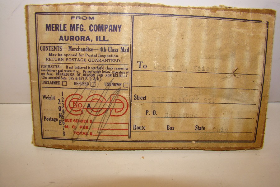 No identification on washer. The name of the company was taken from a label on the original shipping box. (It is presumed that Merle Mfg. Co. made the washer)