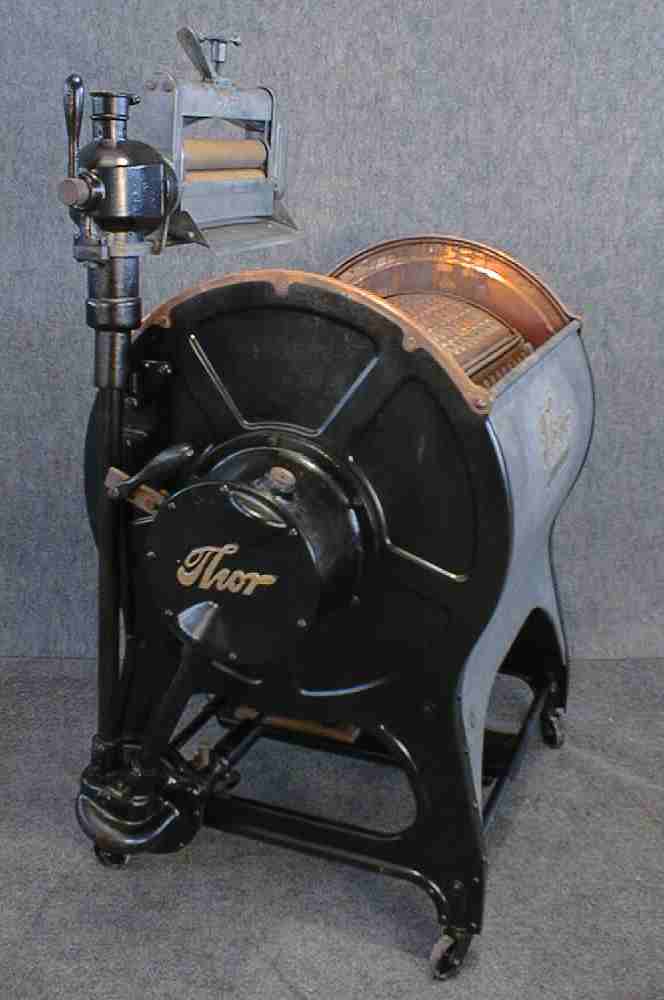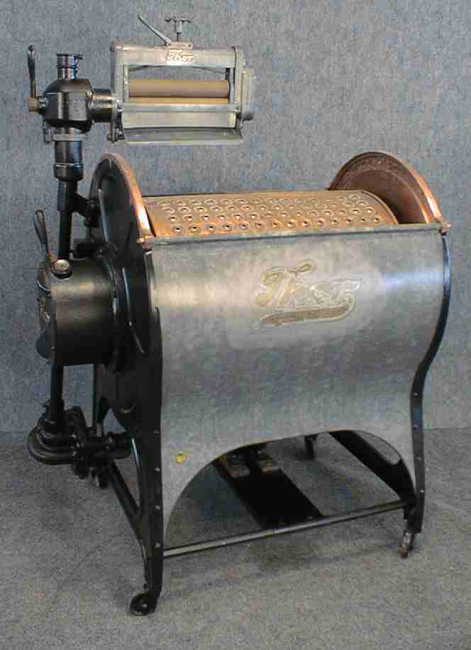 Rotating copper drum, galvanized tub, electric motor |