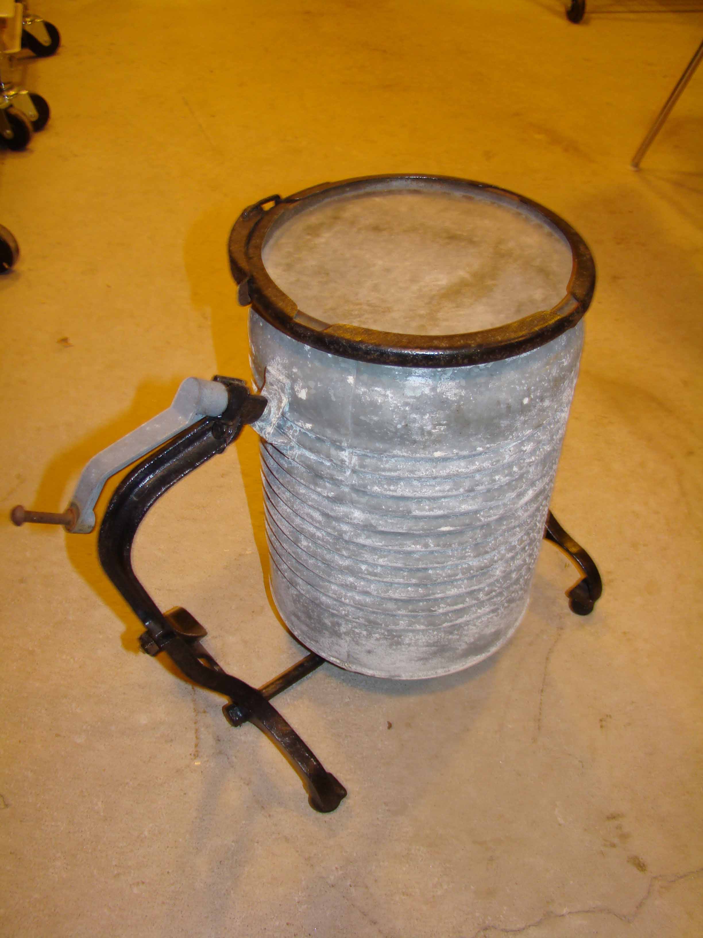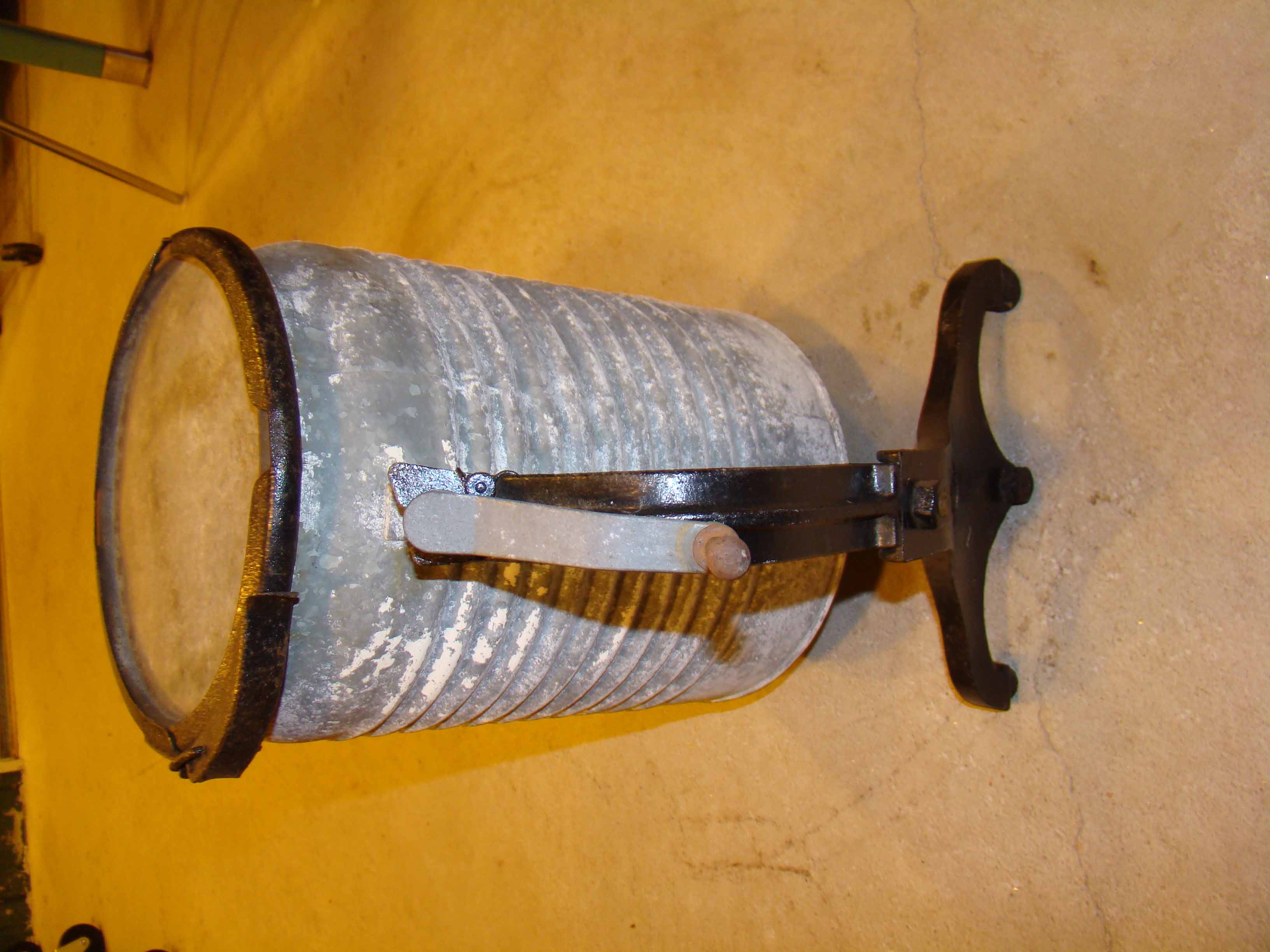Rotating drum, hand operated galvanized apartment sized washer-dry cleaner