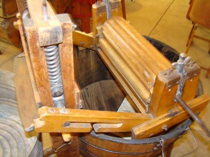 Rotary squeezer, with two wooden tubs on stand