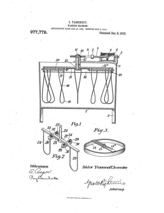 The inventor of the Swash, Isidor Yassenoff and his wife Lena are shown in a 1897 wedding photo attached. Solly Yassenoff and his son Erik are shown in a museum photo (June 22, 2019) Solly is a grandson of Isidor and Lena. US Pat. Nos. 975919 and 977772 |