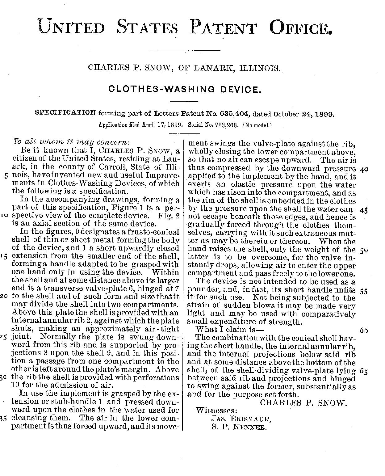 Vacuum washing stomp with hinged flap in cone, Pat No. 635404 |