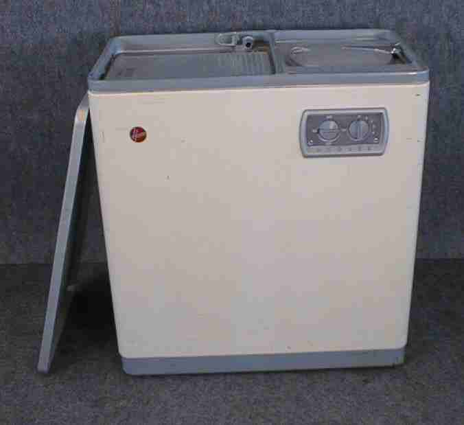 Gyrator washer, white porcelain tub, electric motor, attached spin drier, apartment size |