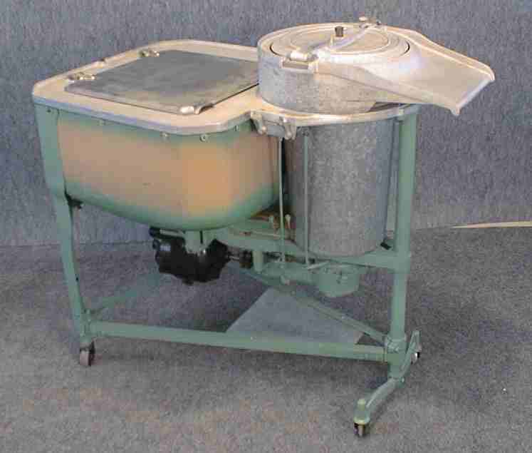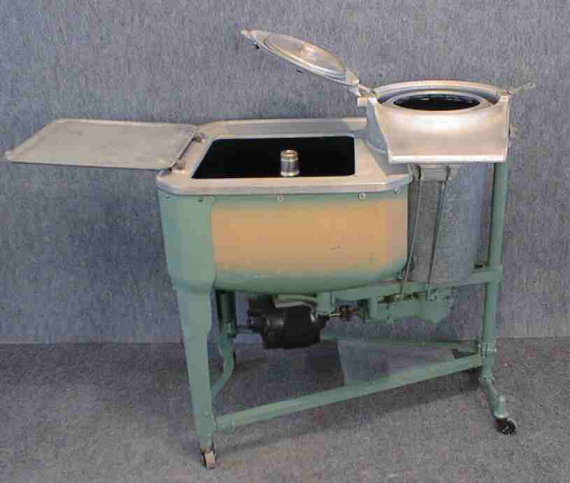 Gyrator washer, tan and green porcelain tub, electric motor |
