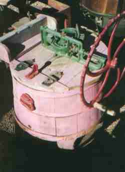 Dolly washer, wooden tub, hand operated, has double rack and pinion gears