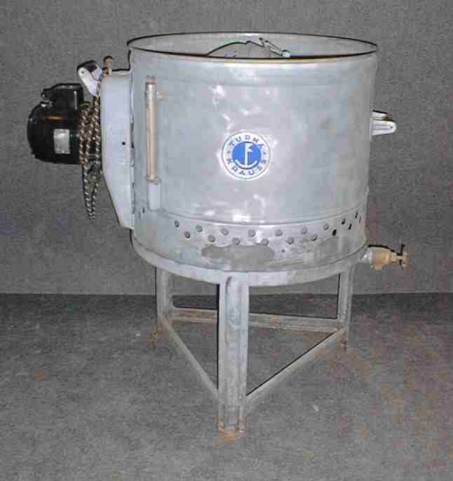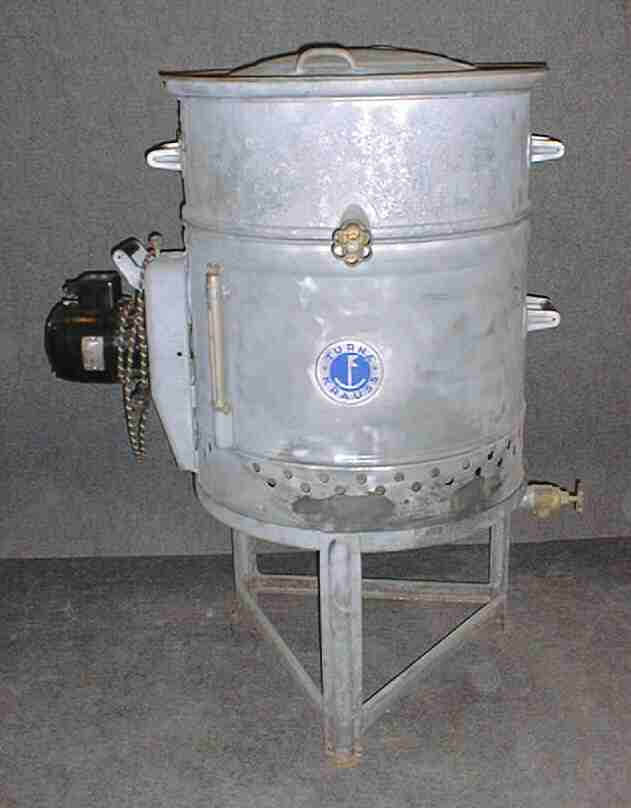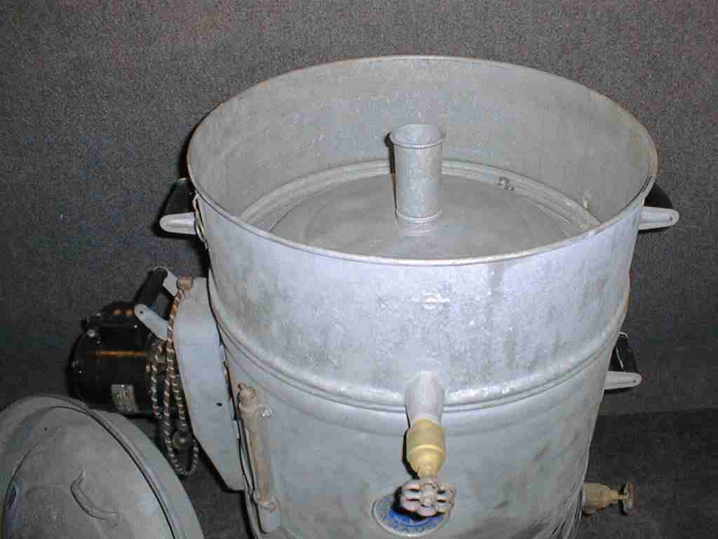 Rotating drum, galvanized tub, electric, has pre soak tub at top