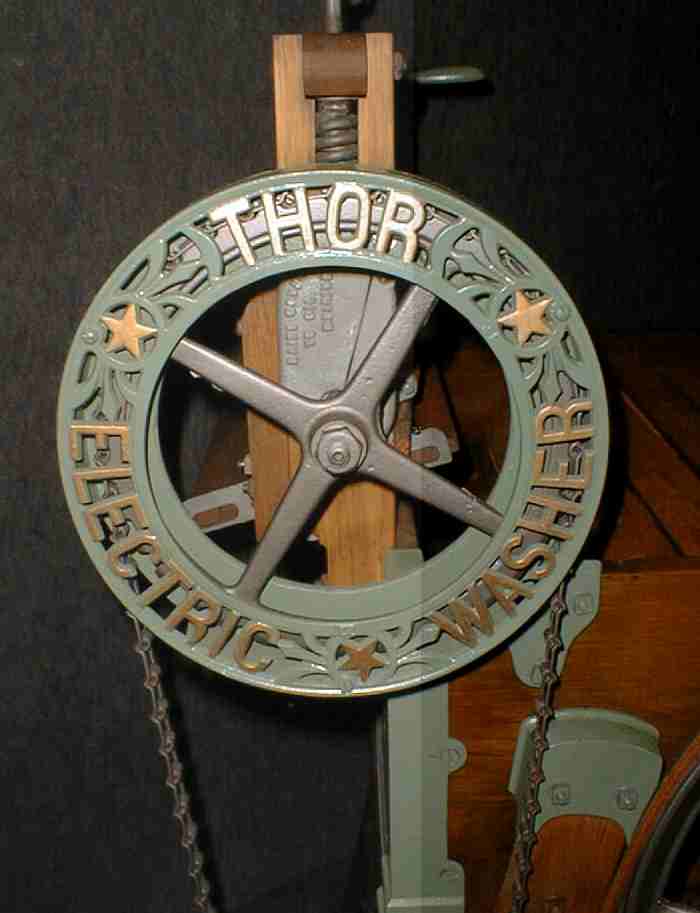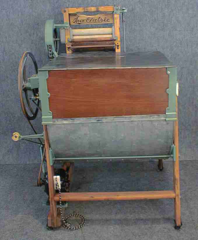 Shown in the picture are Edwin Fisher and Albert Fisher. Their great-uncle, Alva J. Fisher, worked at Thor and was largely responsible for one of the early mass produced electric washing machines.