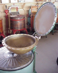 Clam shell has a diaphragm which squeezes the water from the washed clothes