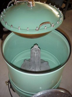 Gyrator washer, green porcelain tub, electric motor, with air compressor and clam shell