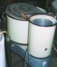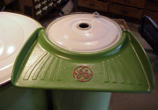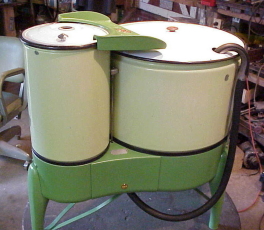 Gyrator washer, green porcelain tub, electric motor, attached spin drier |