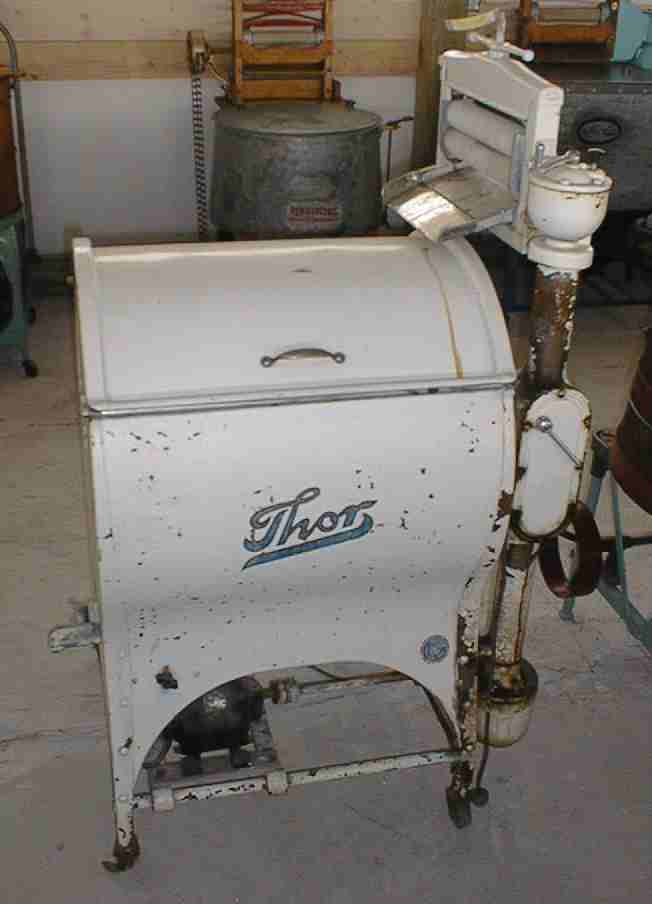 Rotating drum washer, galvanized tub, electric motor |