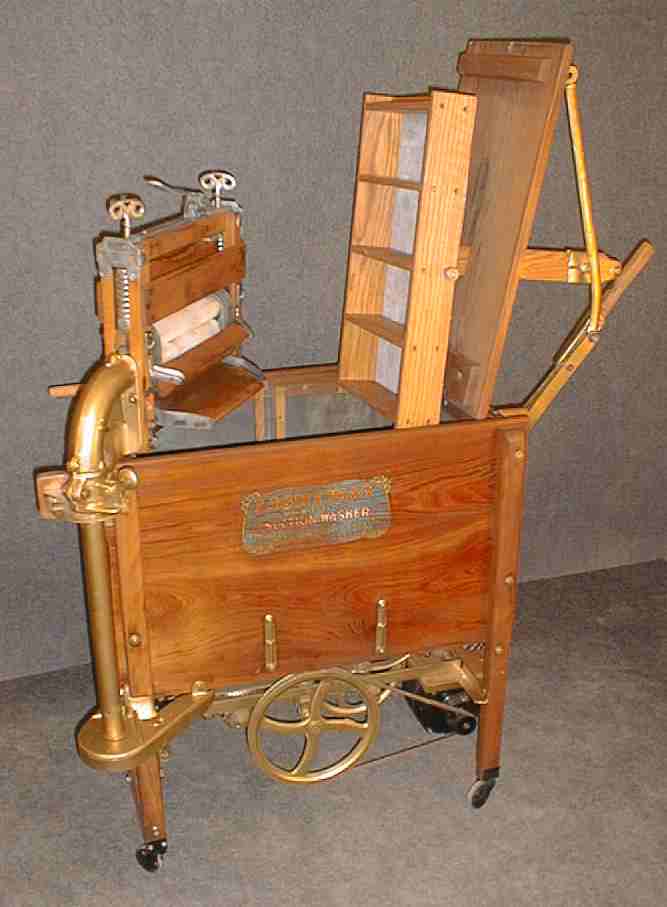Vacuum washer, inverted bread pan agitator, wooden tub, electric motor