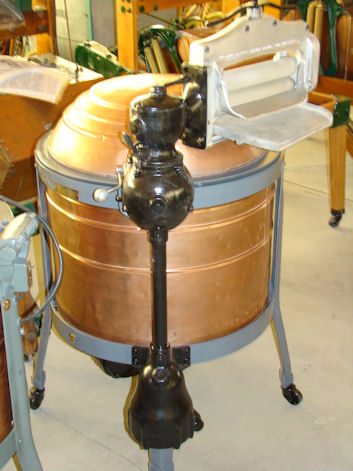Vacuum washer, copper tub, electric, 2-cone, tub rotates while washing |