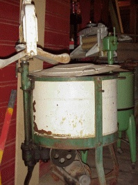 Gyrator washer, copper tub painted green, electric motor |