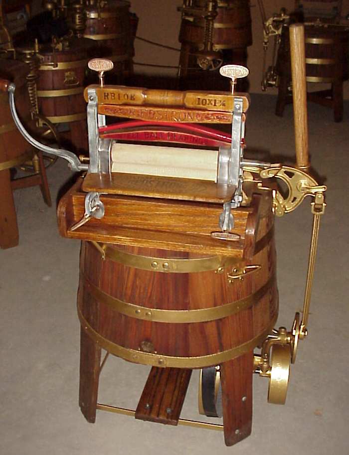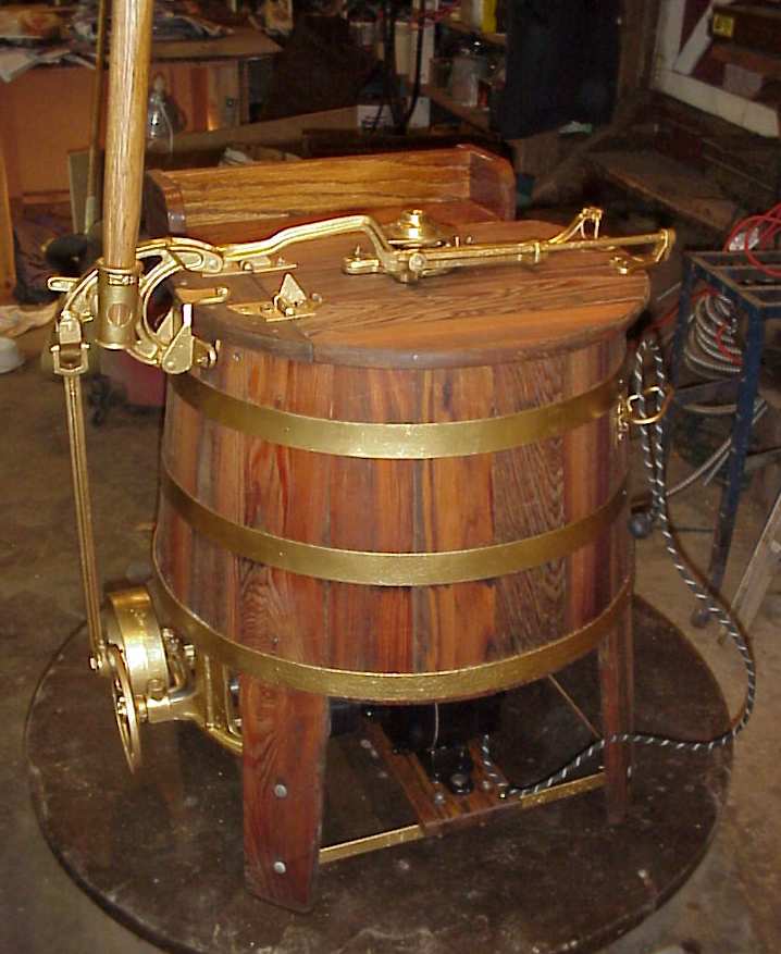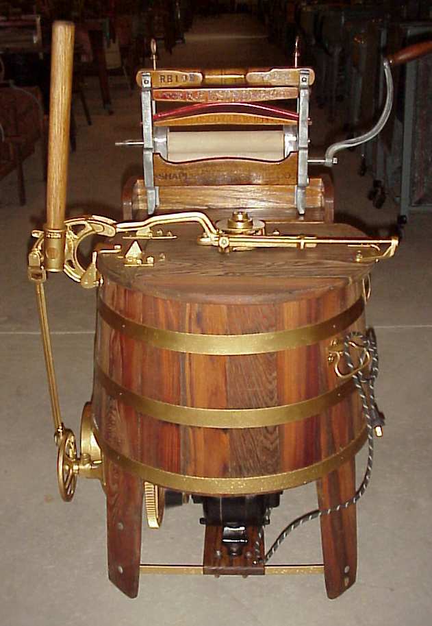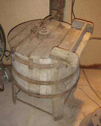 Dolly washer, wooden tub, electric or hand operated or belt driven |