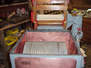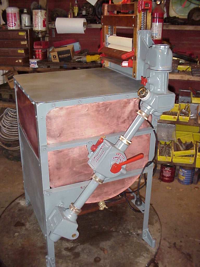 Drum tumbler, steel drum with square copper enclosure, electric motor