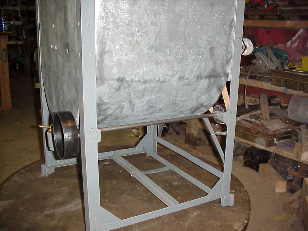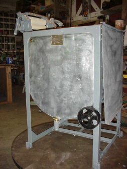 Drum (mill race) tumbler, belt driven, cabinet galvanized (Note, this machine was converted from a Model A (50))